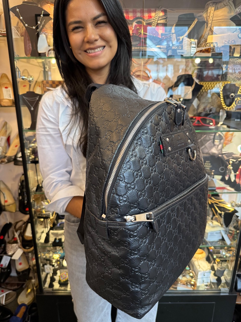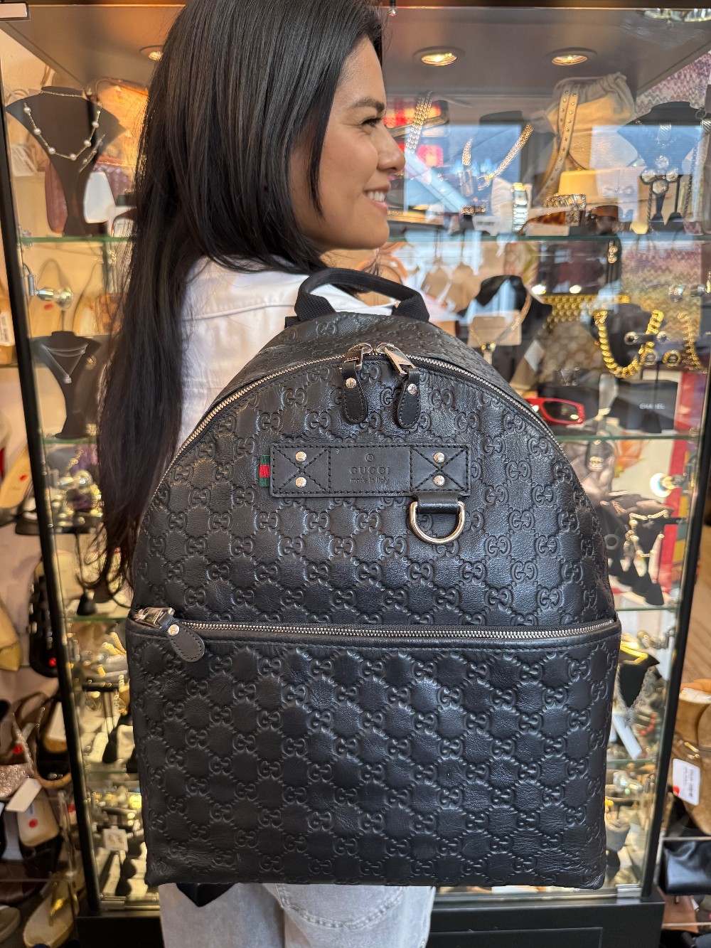 Leather Trimmed Guccissima Rubber Backpack / Black / WEAR ON STRAP ROOTS
