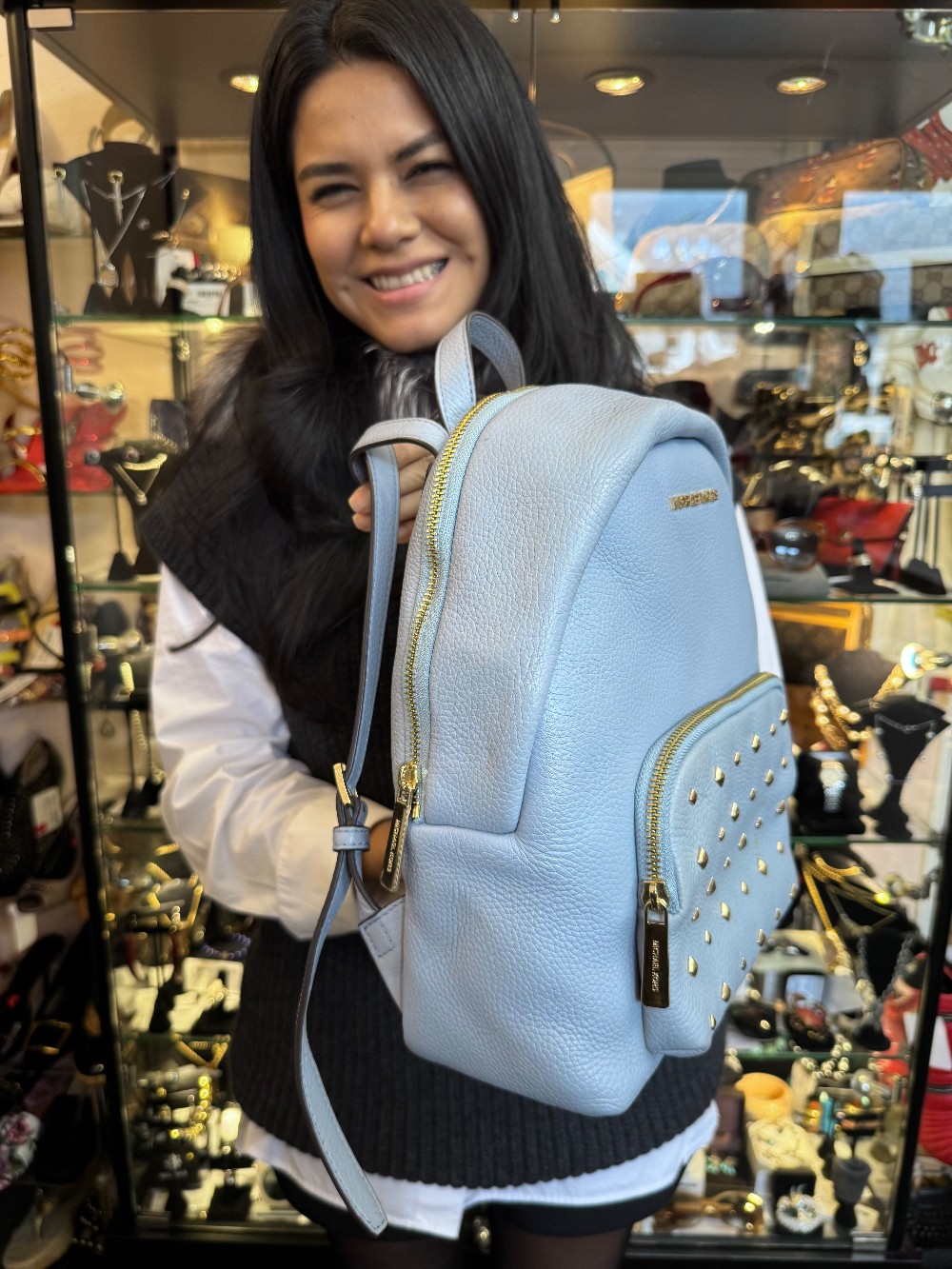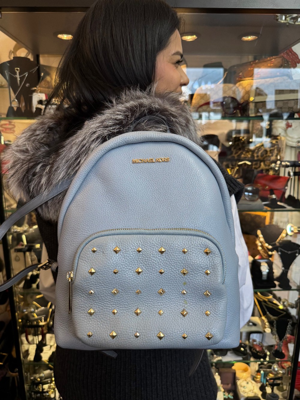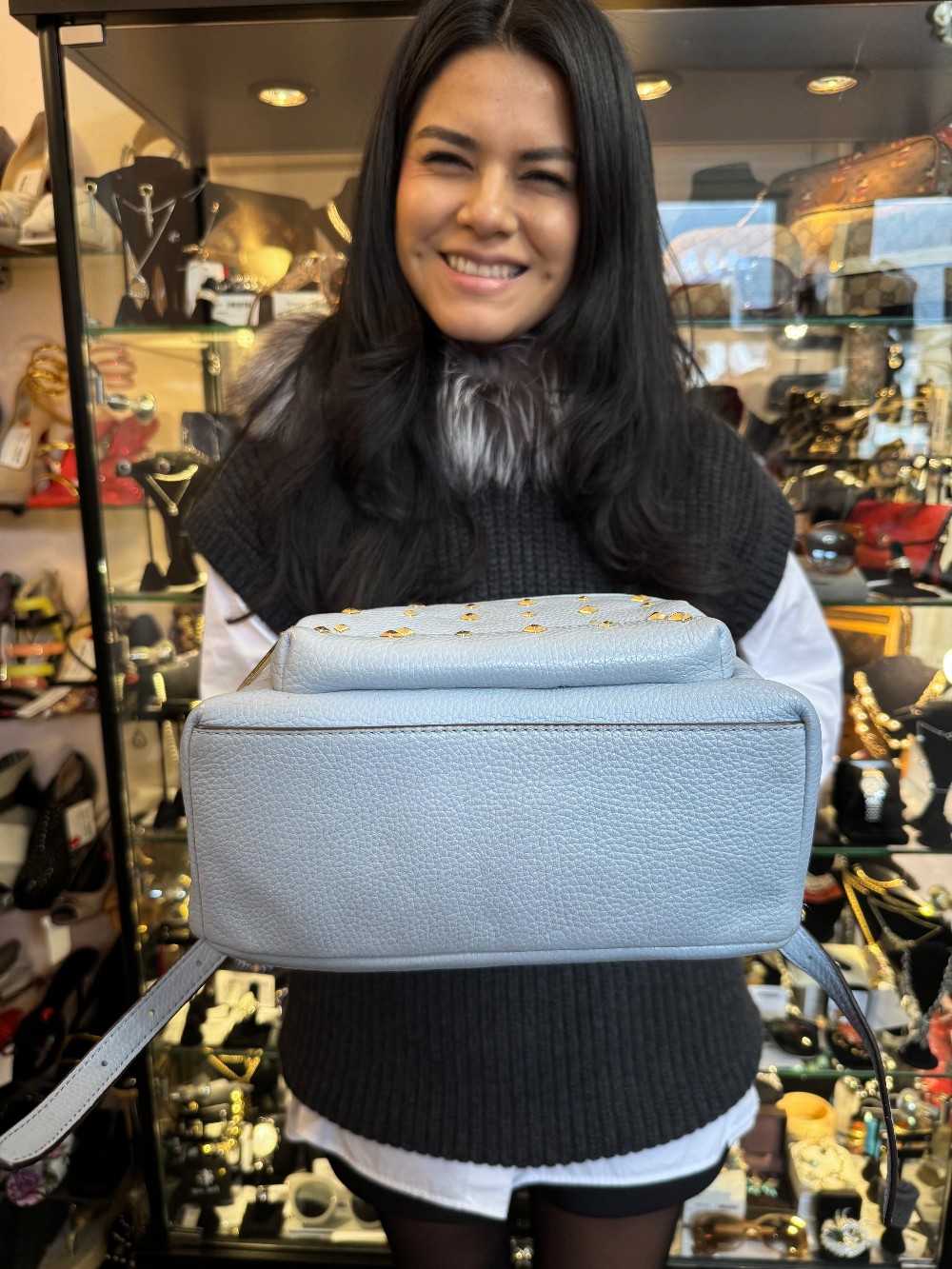 Studded Pocket Grain Leather Backpack - Light Blue - BLEMISHES