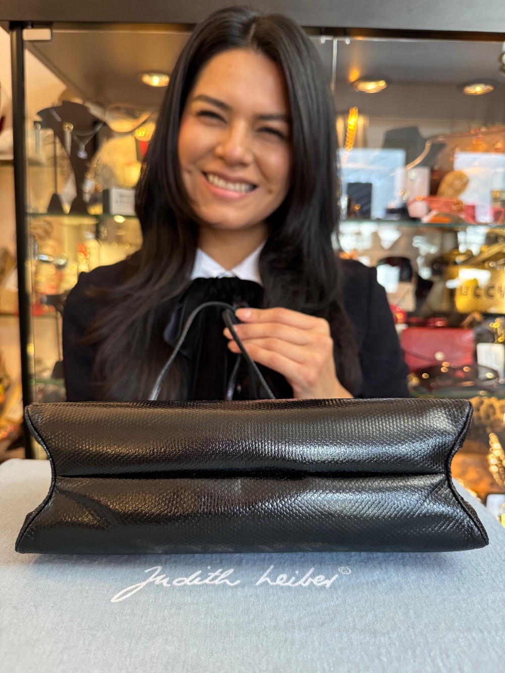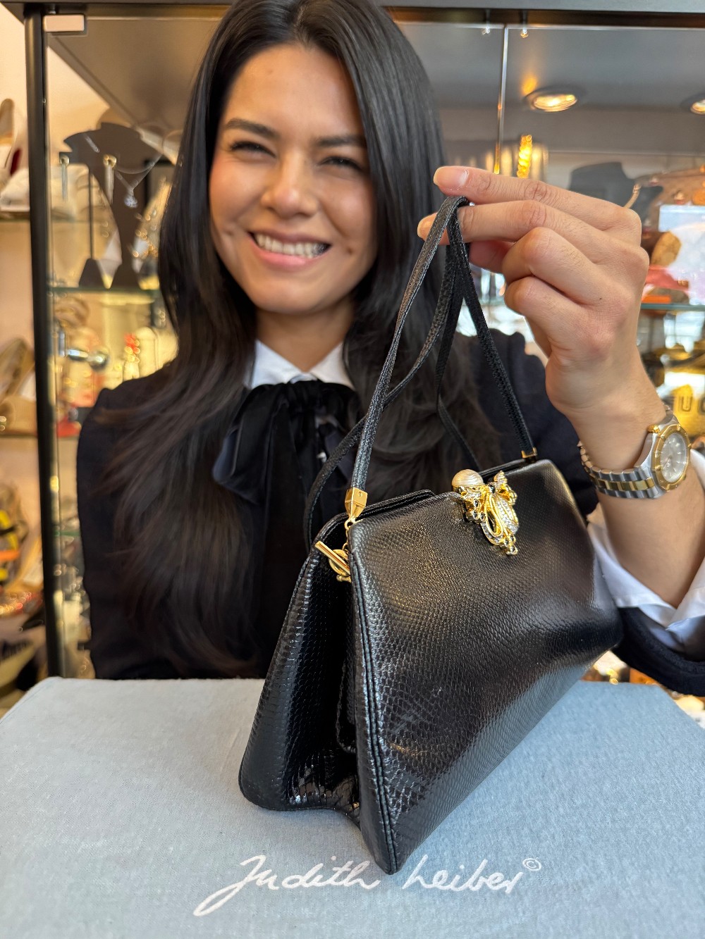 /Lizard Skin Evening Bag w/ Coin Purse - Black - VINTAGE / MISSING RHINESTONES