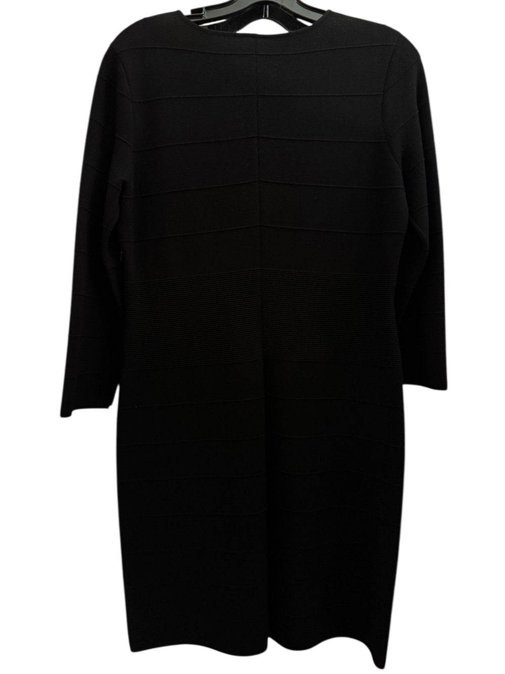 Textured Paneled Rib Knit V Neck 3/4 Sleeve Dress - Black