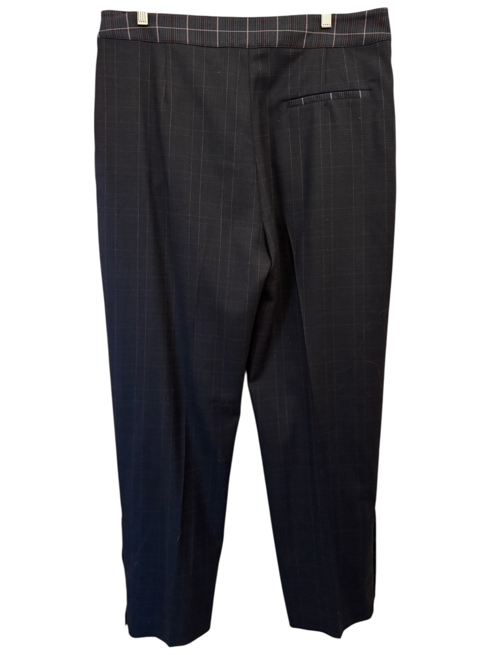 Plaid Print Belted Accent Zip Ankle Straight Leg Pants - Navy / Red / Pink