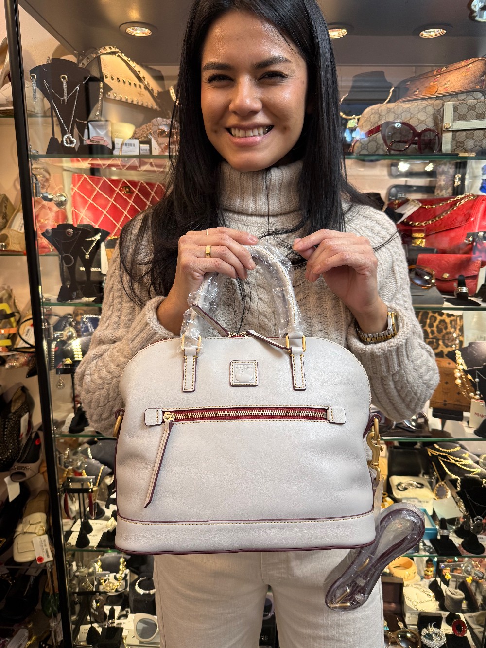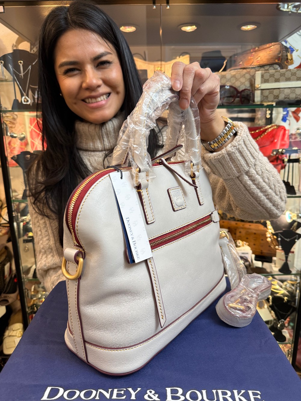 NEW W/ TAGS - Florentine Leather Domed Satchel W/ Crossbody Strap - Light Gray/Red