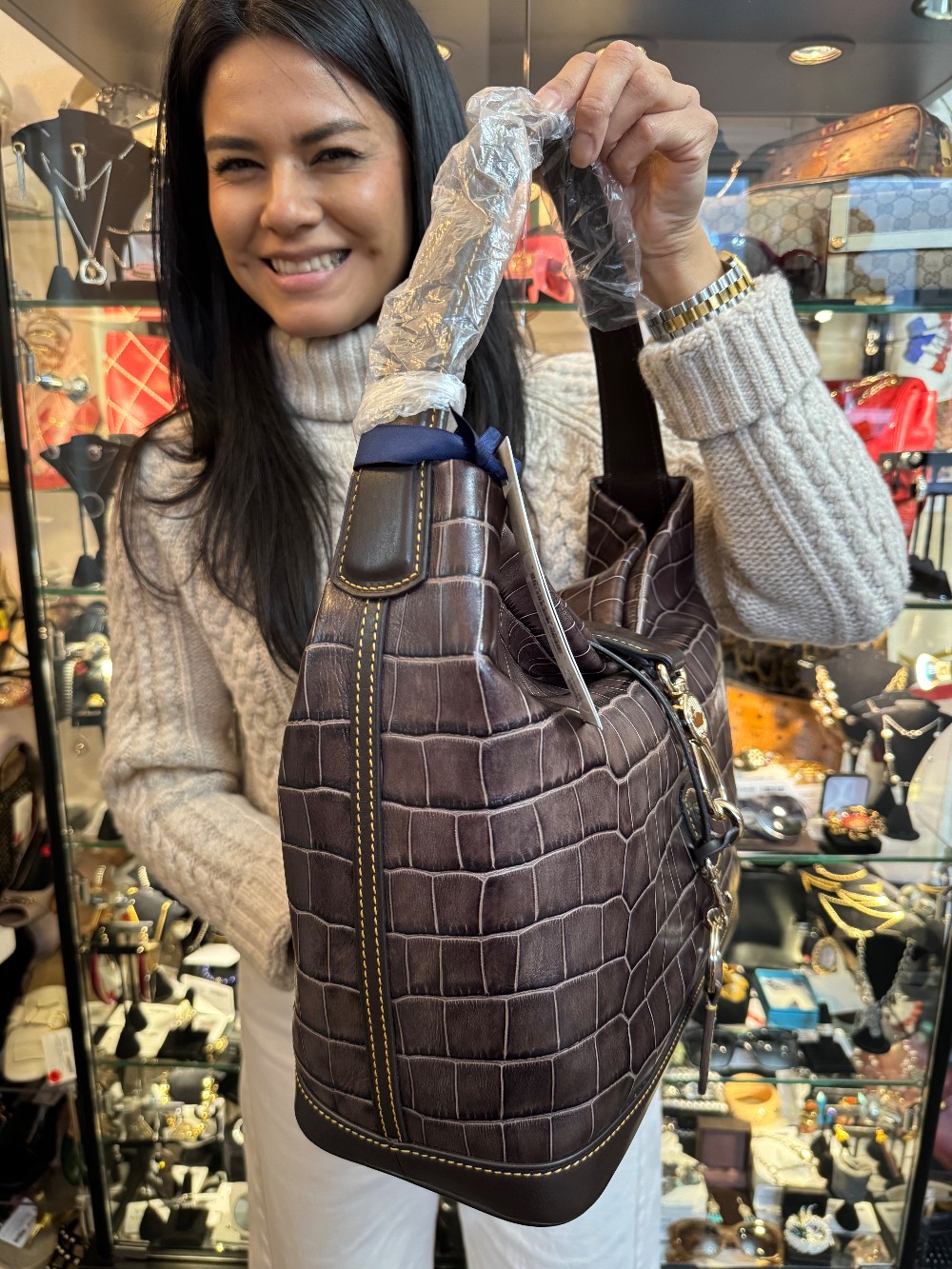 NEW W/ TAGS Croc Embossed Logo Lock Sac - Brown