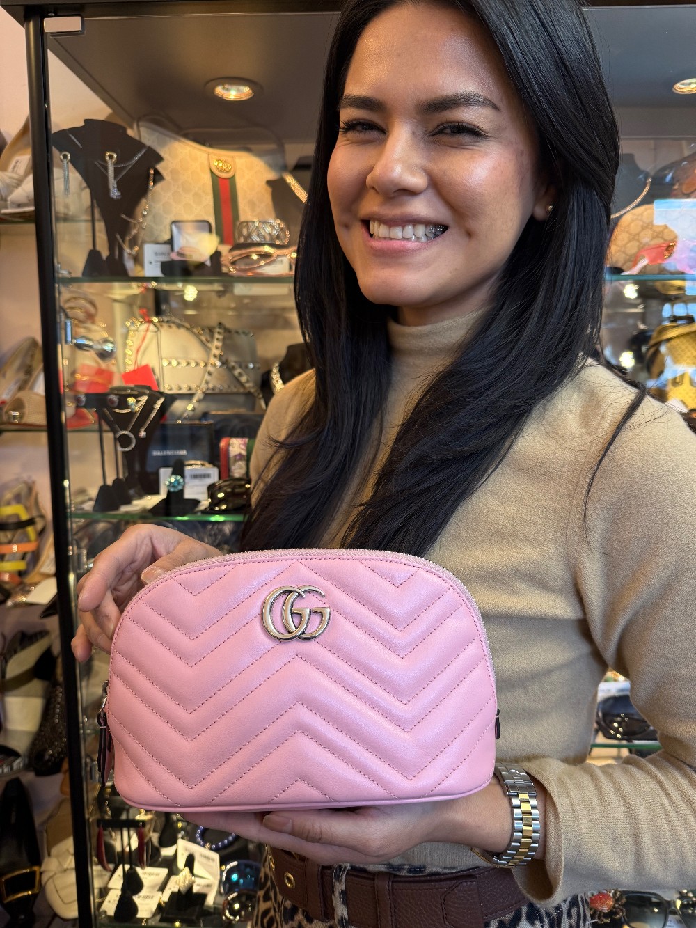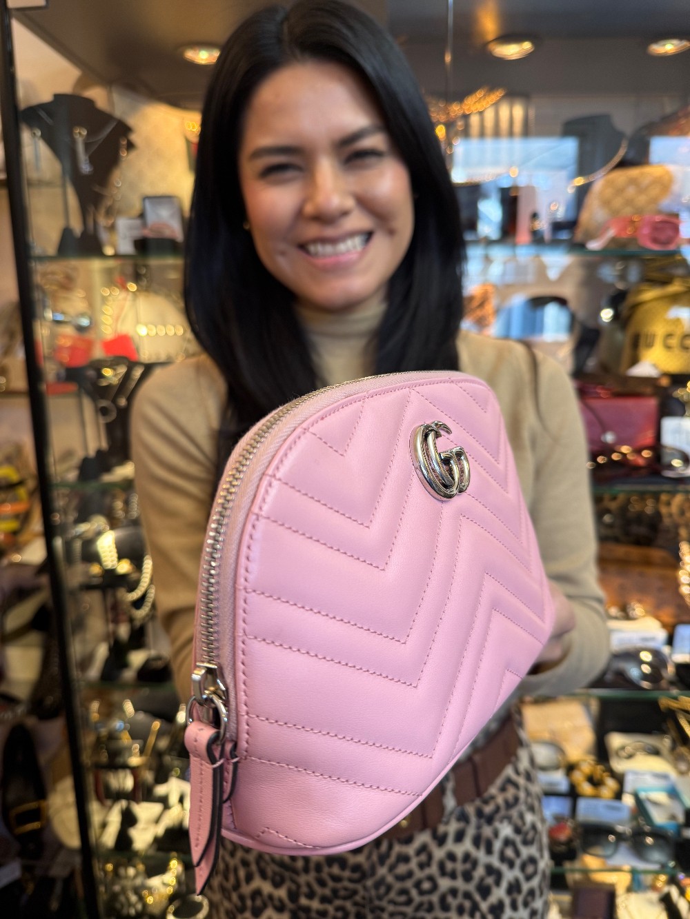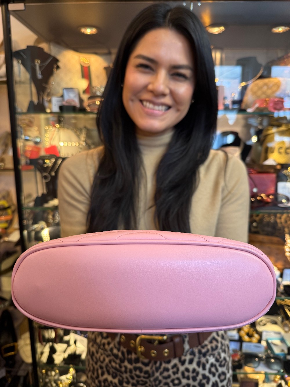 GG Marmont Matelasse Chevron Quilted Leather Cosmetic Case / Pink