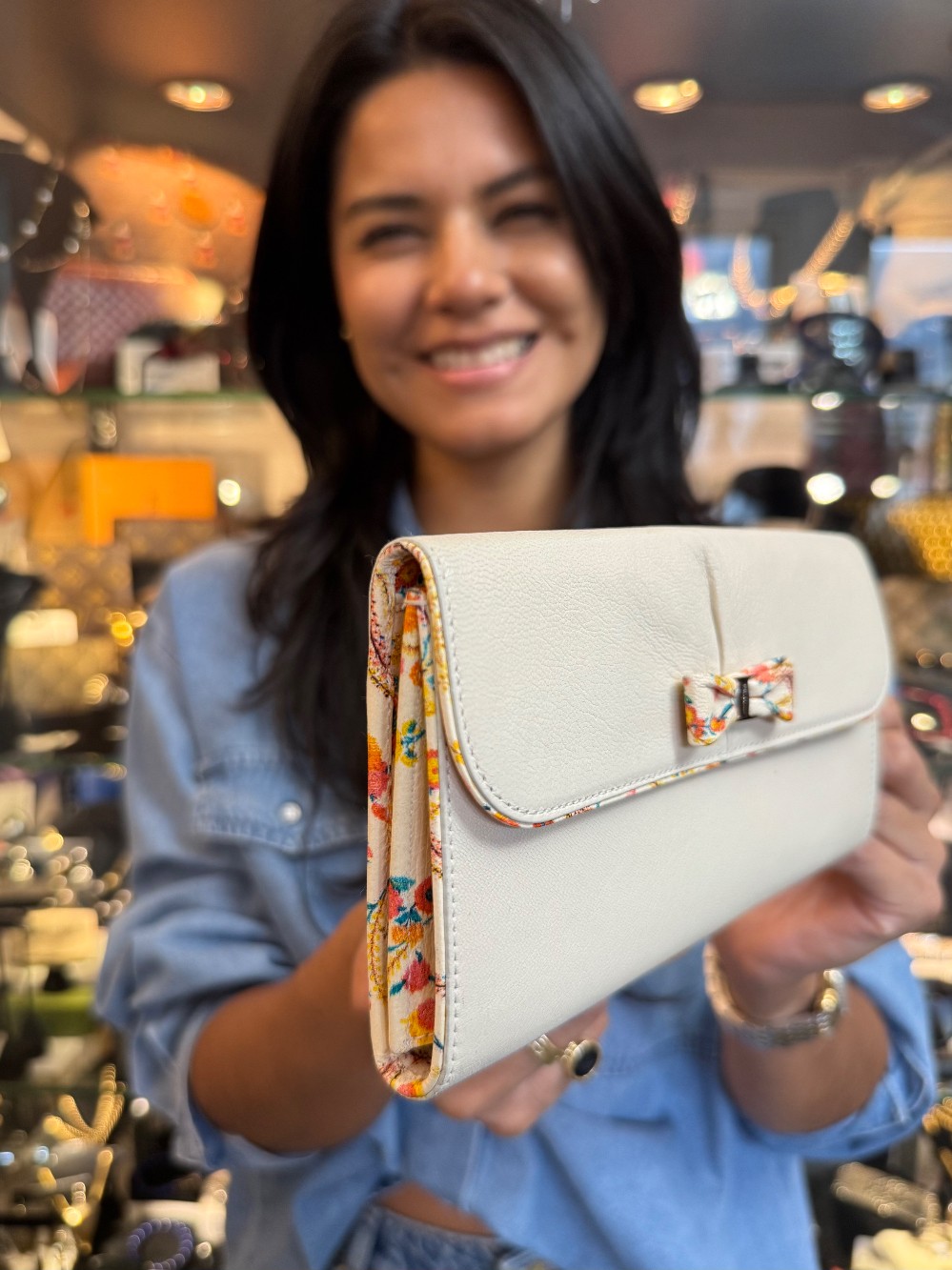 Vara Bow Trifold Continental Wallet - Cream / Floral Multi